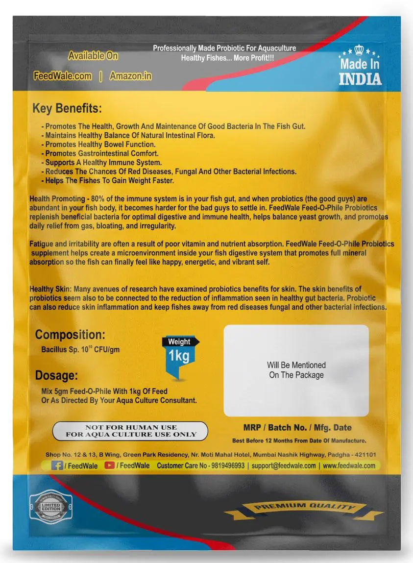 FeedWale Gut Probiotics Feed-O-Phile is a specially formulated probiotic that offers significant benefits for both fish health and aquaculture productivity.