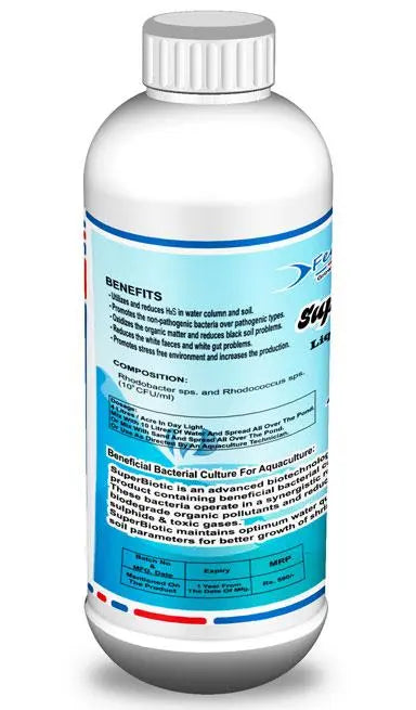 FeedWale SuperBiotic is a premium liquid probiotic designed to optimize the conditions of your fish ponds and biofloc systems. Containing beneficial bacterial cultures, this product is essential for improving water quality, enhancing fish growth, and maintaining a healthy aquaculture environment.